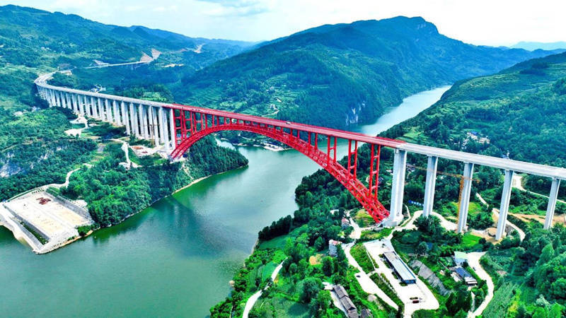 而德余高速乌江特大桥——这座拥有“同类桥型跨径世界第一”头衔的工程奇迹,本身就成了最耀眼的新地标。大桥飞跨乌江峡谷,红色的桥塔在青山绿水间格外醒目。桥下,昔日沉寂的周家坨渡口焕然一新。
